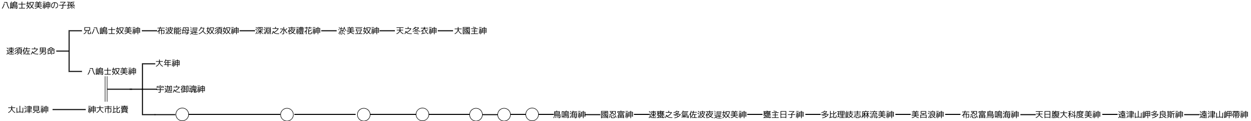 「大國主神〜遠津山岬多良斯神」までの系譜を、系図化してみましたが、